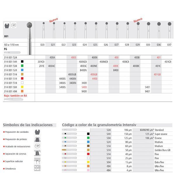400A/6 | INTENSIV | fresas de diamante y carburo-tungsteno de alta calidad. Acabado muy uniforme, de bajo desgaste y duración muy superior a otras marcas (2-3 veces más). Eliminación de restos mejorado y optimas propiedades de enfriamiento. Tipos de Turbina, Contra-ángulo y Pieza de mano.Caja de 6 unidades.