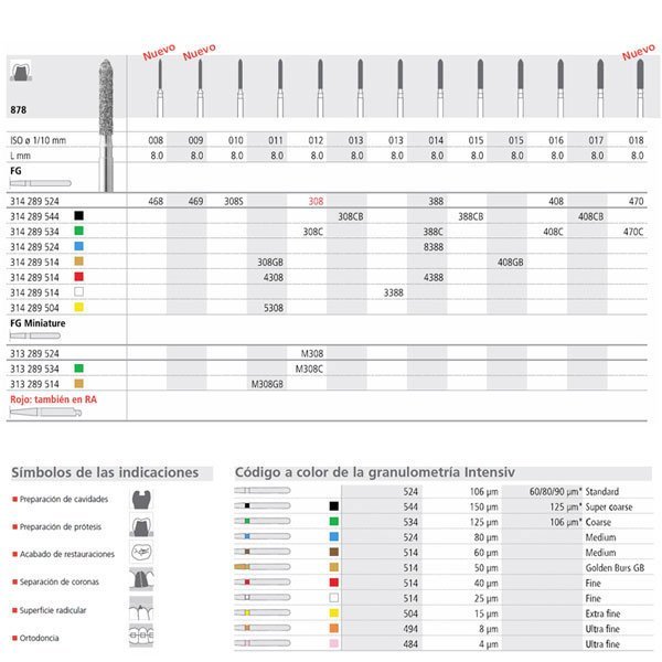 fresas de diamante y carburo-tungsteno de alta calidad. Acabado muy uniforme, de bajo desgaste y duración muy superior a otras marcas (2-3 veces más). Eliminación de restos mejorado y optimas propiedades de enfriamiento. Tipos de Turbina, Contra-ángulo y Pieza de mano.Caja de 6 unidades.