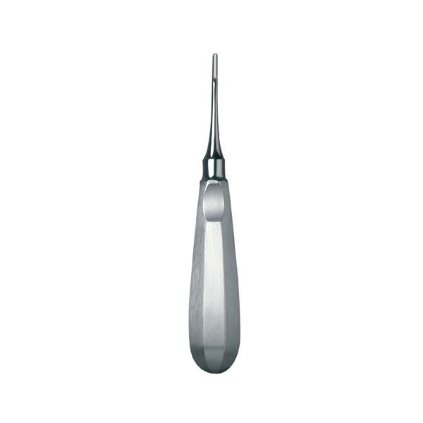 Luxador recto 2,5mm.Instrumentos para separar la encía del diente antes de la extracción. Los bordes son cortantes y la forma más plana que un botador. La forma da un perfecto control.